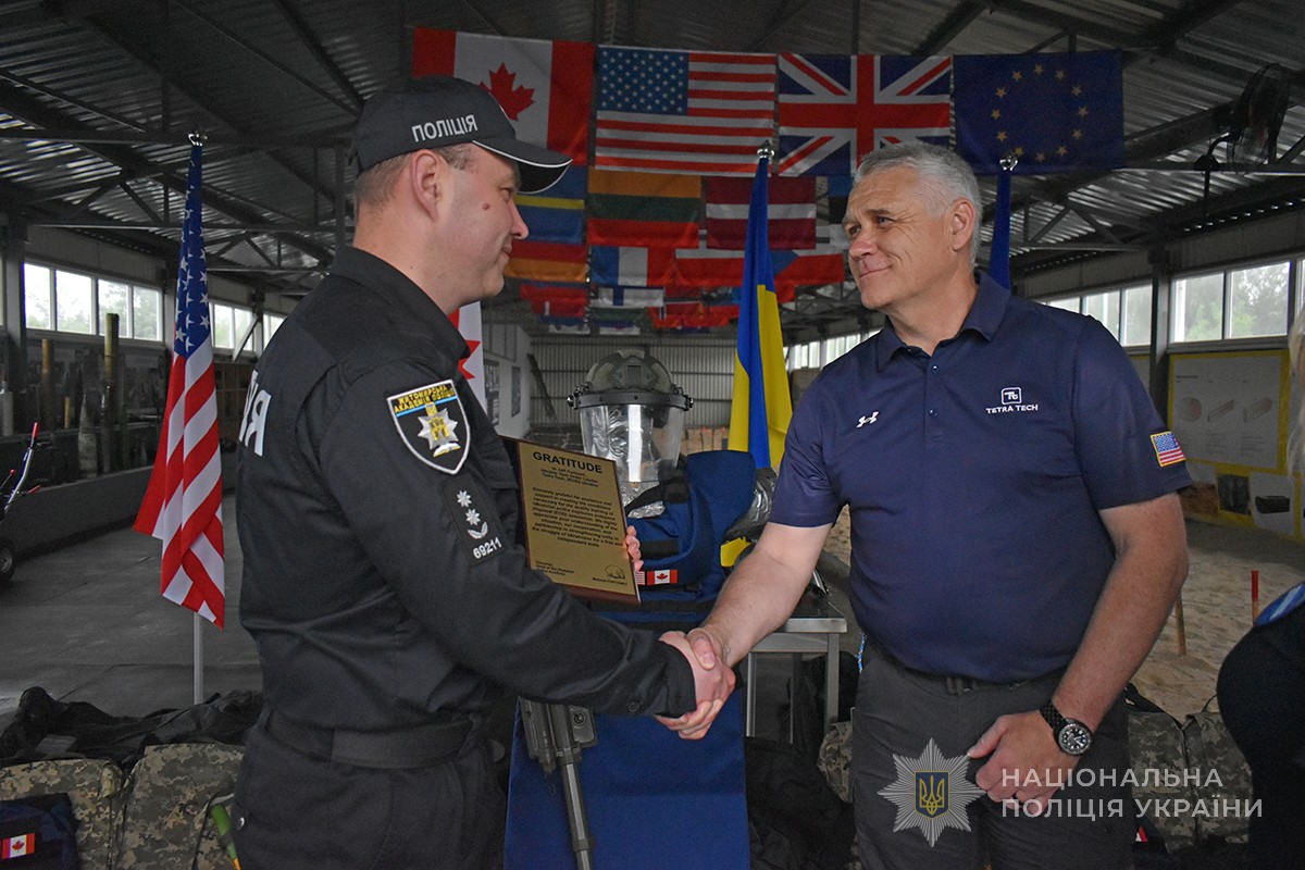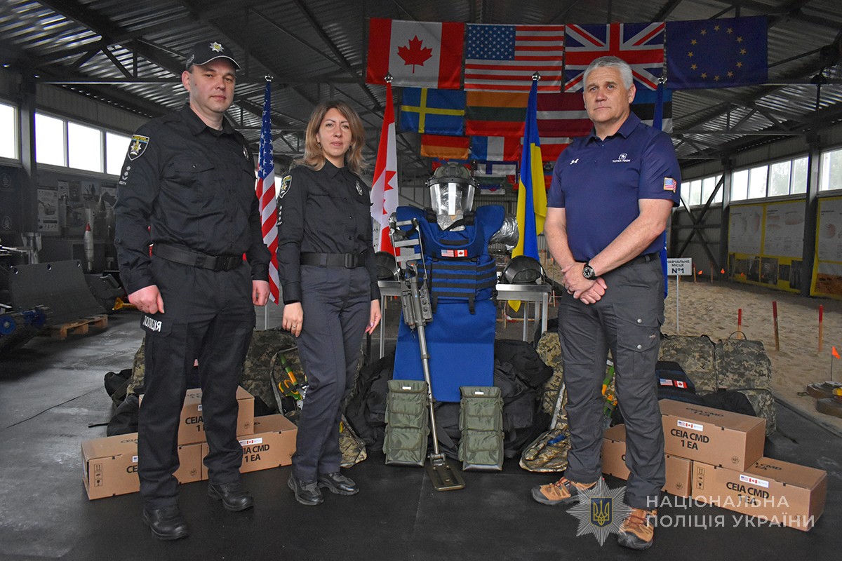 Нині ж компанія поповнила базу поліцейської академії комплектами захисних костюмів і шоломів для підготовки вибухотехніків поліції, а також металошукачами та наборами інструментів для розмінування.