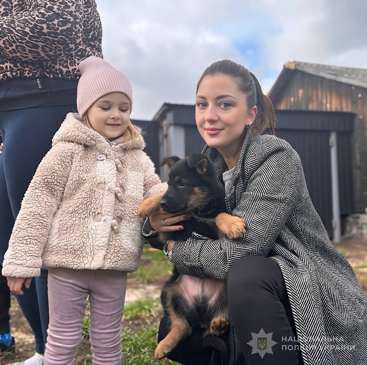 Щоби підтримати родину, до них приїхали співробітники Житомирської академії поліції: старша психологиня Діана Джулакян, начальник стройового відділення Сергій Лебідь, а також кінологи Сергій Гайдук і Катерина Стрілець та їх чотирилапі помічники.