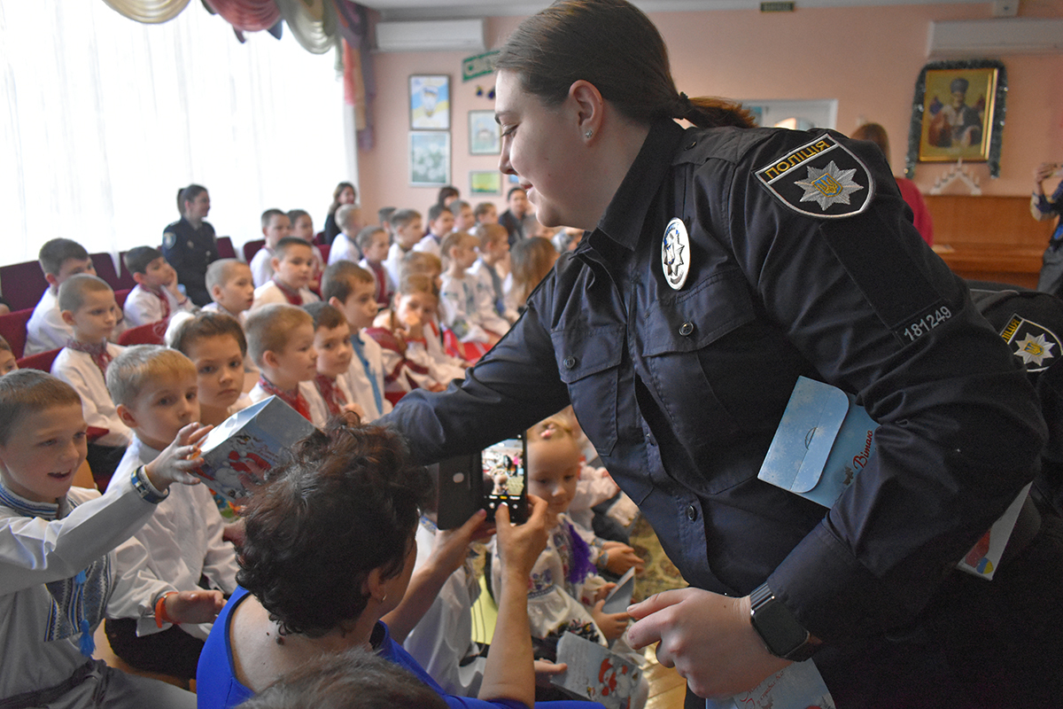 Візит поліцейських академії до спецшколи відбувся у передріздвяний час. Працівники та слухачі однієї з навчальних груп влаштували для маленьких вихованців закладу казкове дійство.