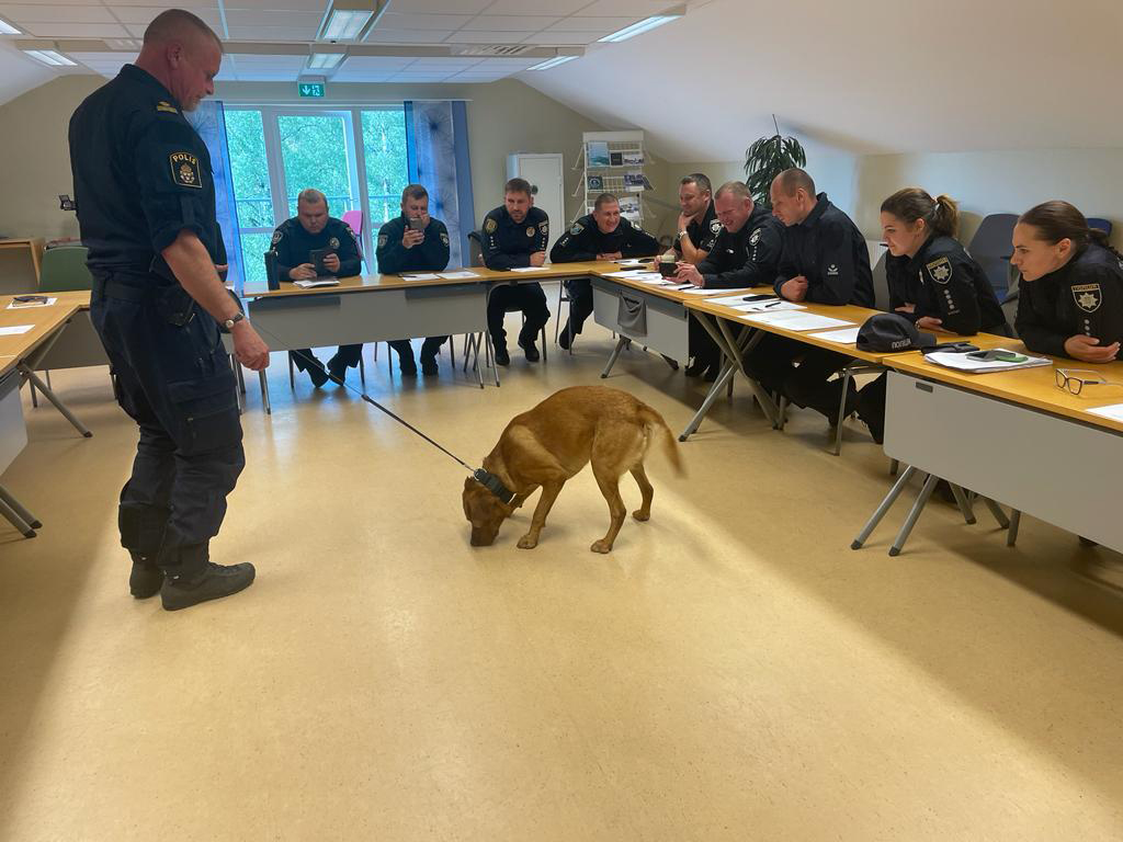 Навчання для українських кінологів-поліцейських були організовані у місті Карсборзі на базі тренінгового центру поліції та військових армії Королівства Швеції. Програма складалась з двох великих блоків: надання першої медичної допомоги людям і службовим собакам та методика пошуку тіл людей у складних нестандартних умовах.