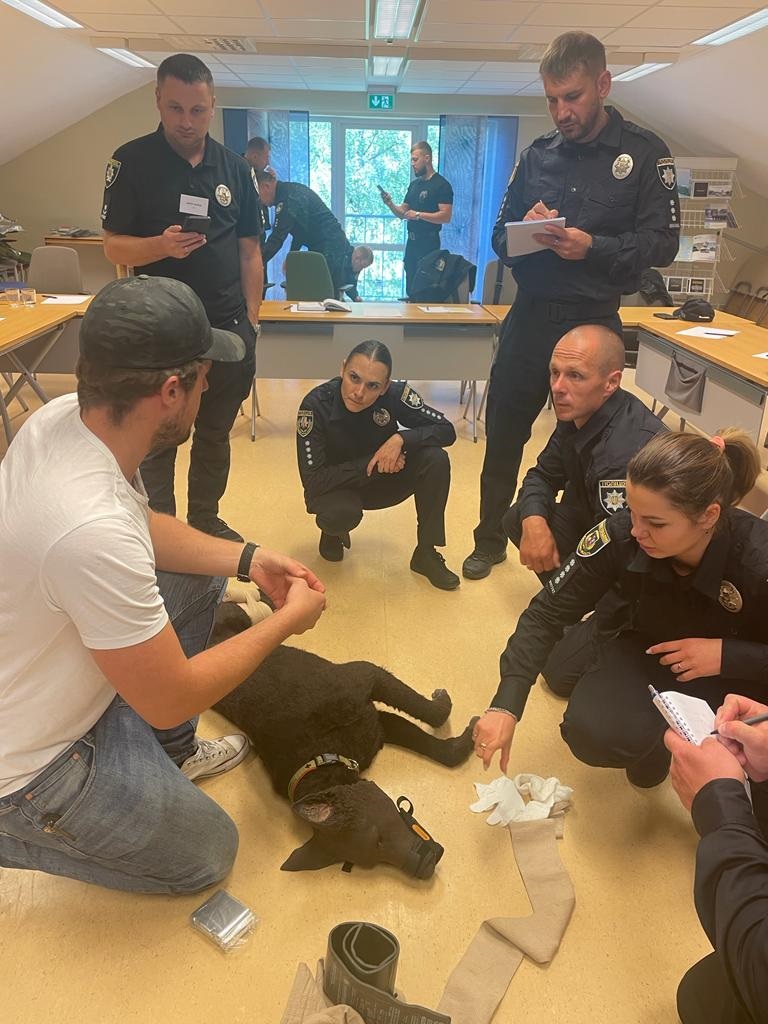 – Ми знаємо про спосіб зупинки масивної кровотечі у пораненої людини за алгоритмом MARCH. А під час навчань шведські колеги поділились навичками і досвідом такої схеми у пристосуванні до тварин. У шведів службовий собака - це не просто спецзасіб, це повноцінна бойова одиниця. Тому врятувати життя чотирилапому своєму напарнику – завдання кінолога. Такі знання надзвичайно корисні для українських кінологів, які працюють у зоні ризику і небезпеки, - продовжує керівник циклу кінології Житомирської поліцейської академії.