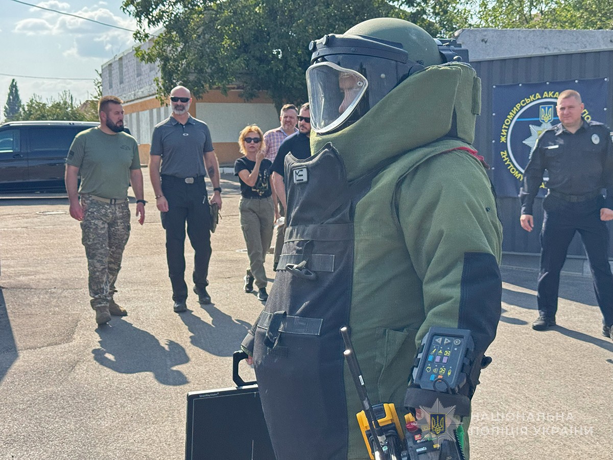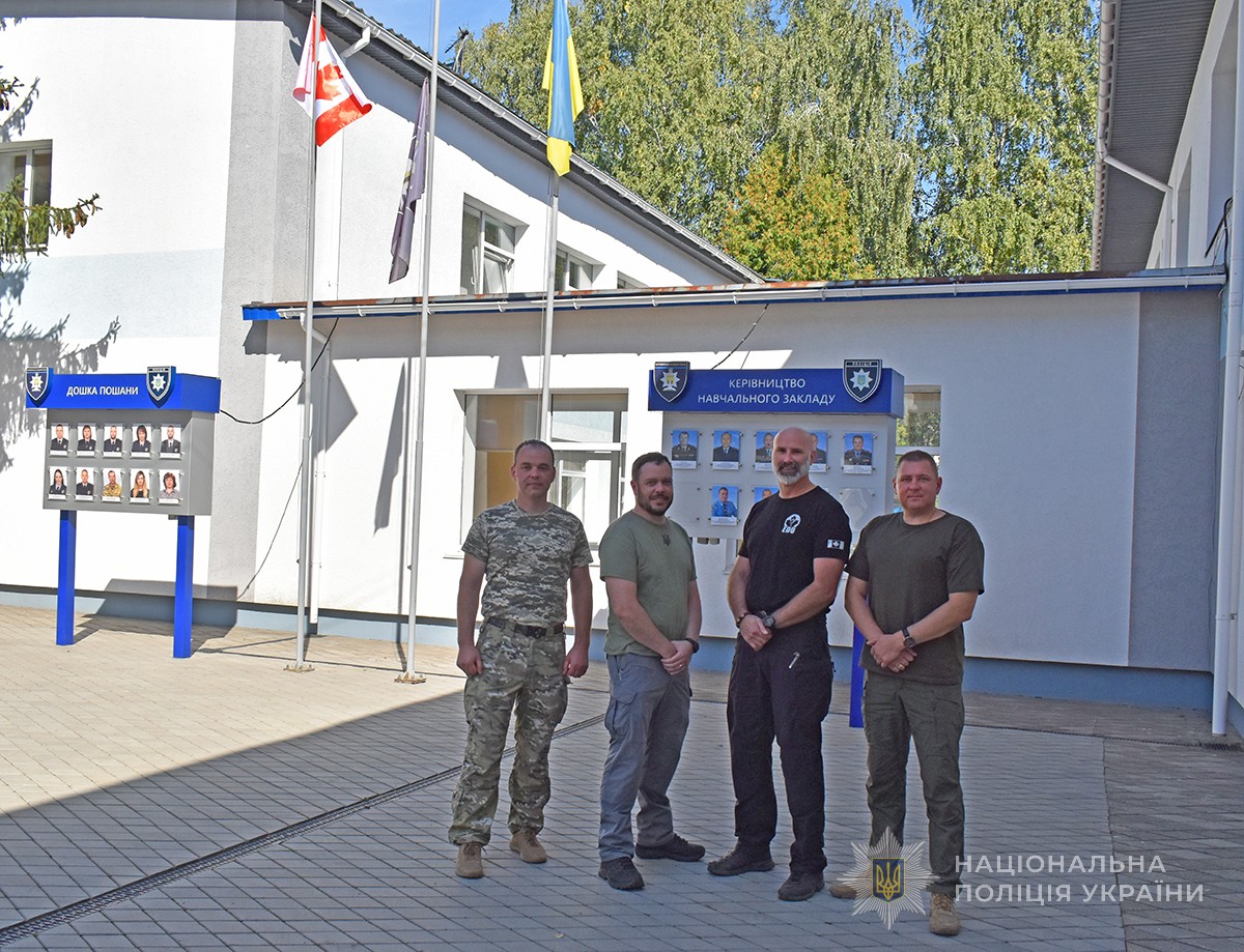 З робочим візитом у Житомирі перебувала делегація Канадської поліцейської місії в Україні. Тренери оглянули комплекс місцевої академії поліції, ознайомились з організацією освітнього процесу та долучились до практичних занять з вибухотехнічної підготовки поліцейських.