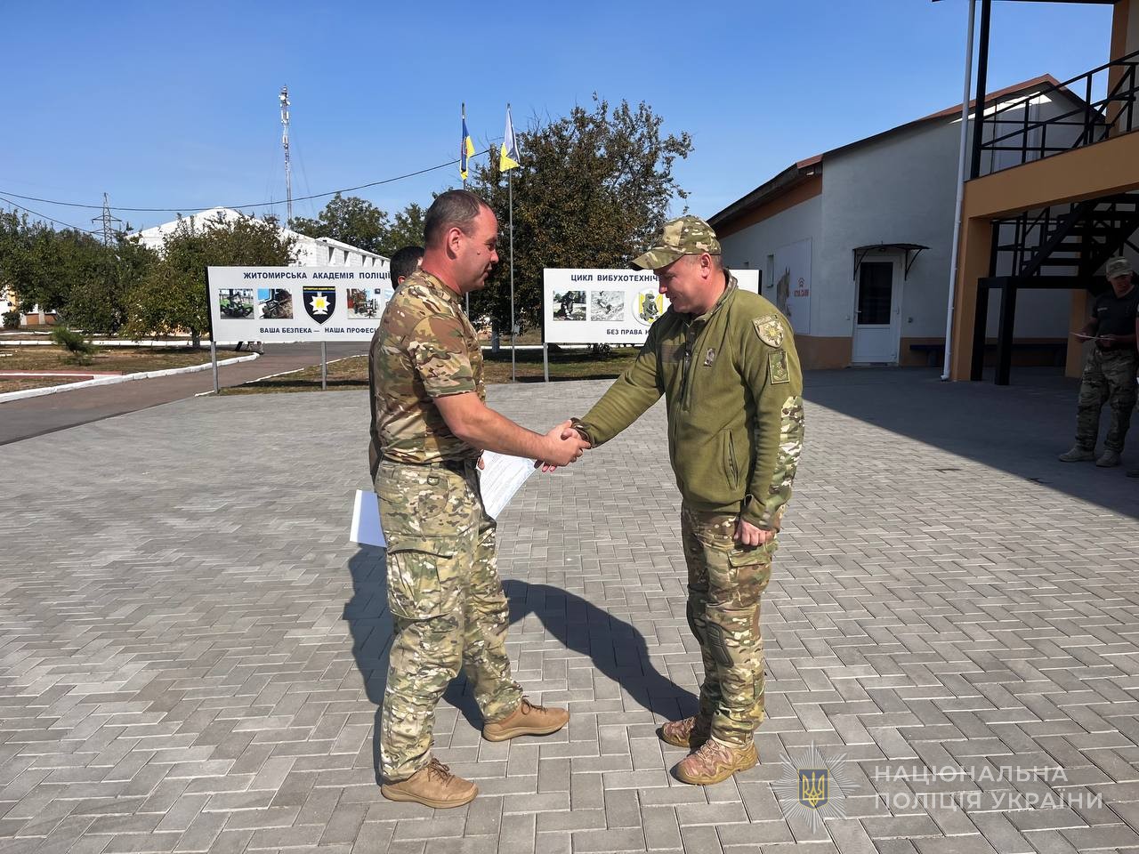 Слухачі академії, а це представники вибухотехнічної та кінологічної служб поліції з усіх регіонів України, упродовж курсу в Житомирській академії освоїли теоретичні та практичні блоки навчання.