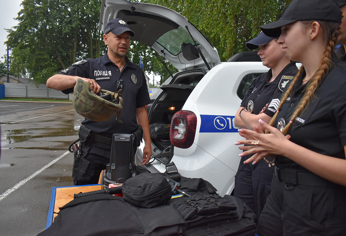 Окрім того, Анатолій Андрієвський продемонстрував майбутнім колегам службовий автомобіль, придбаний громадою для роботи офіцера поліції, а також універсальне оснащення транспортного засобу.