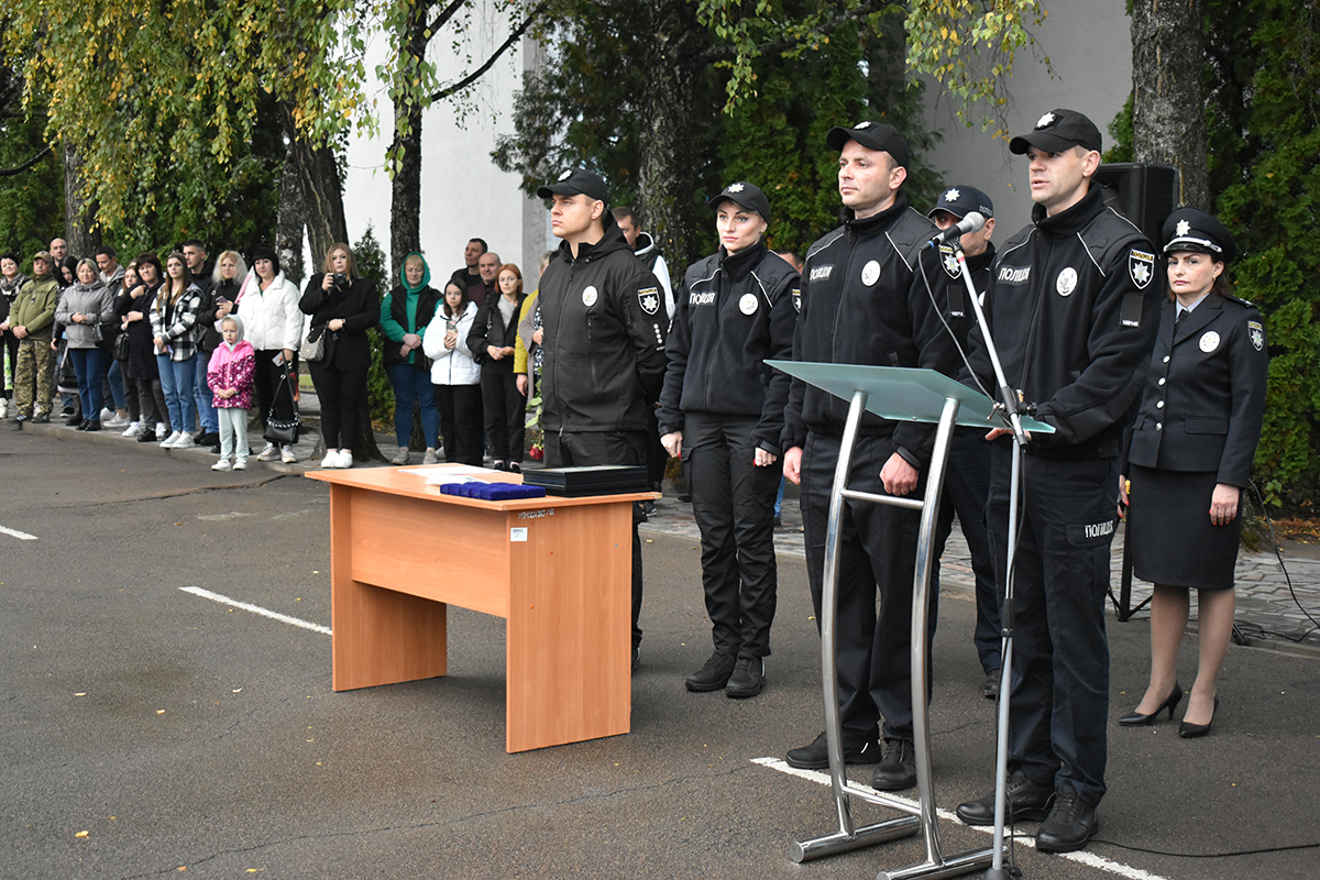 Випускників привітав т.в.о. начальника Житомирської академії поліції Віктор Кручинський. Він та перший заступник начальника академії Наталія Чабанюк вручили їм дипломи і перші відомчі заохочення з побажаннями успішної служби, а також сил і витримки на шляху до перемоги України.
