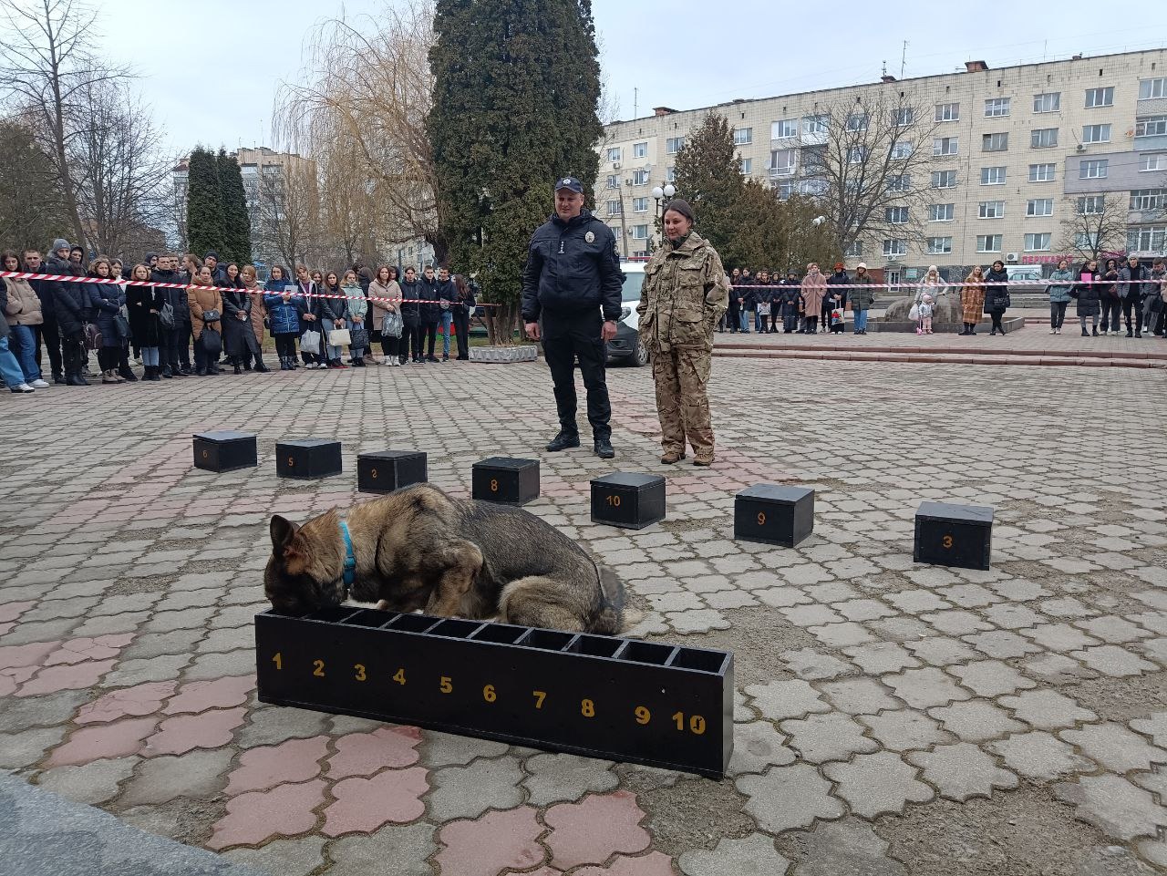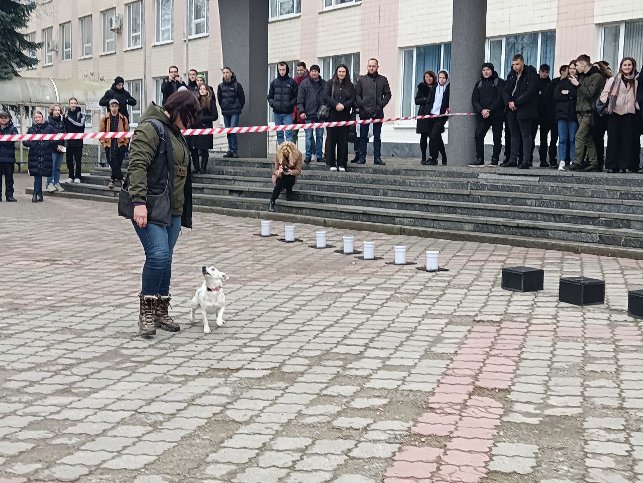 Викладачі-кінологи продемонстрували студентам практичні моменти з загального курсу дресирування службових вівчарок Тари та Хантера і джек-рассел-тер'єра Азарта. Також собаки показали на загал відмінні результати у пошуку речей за запахом (імітаційні зразки вибухових і наркотичних речовин).