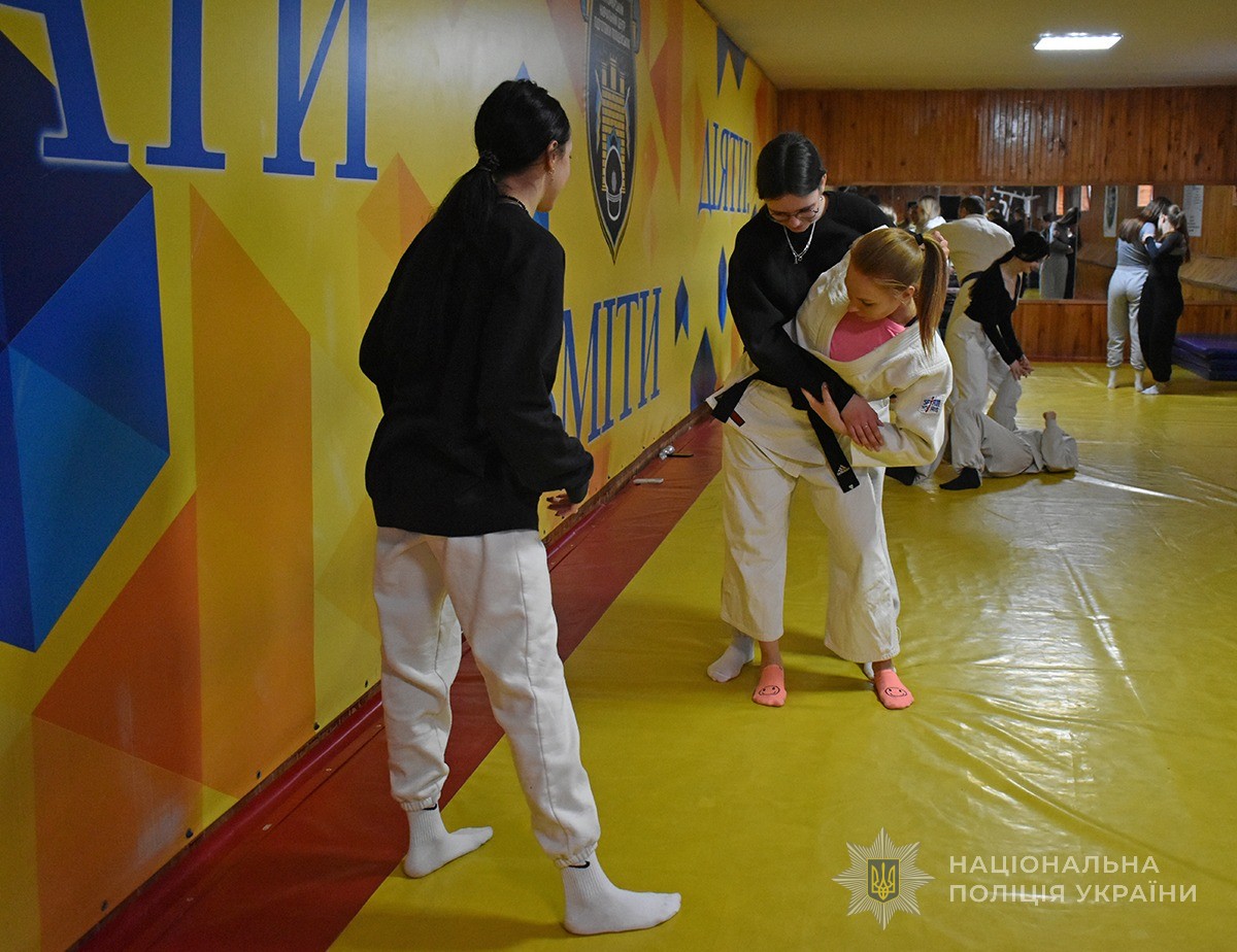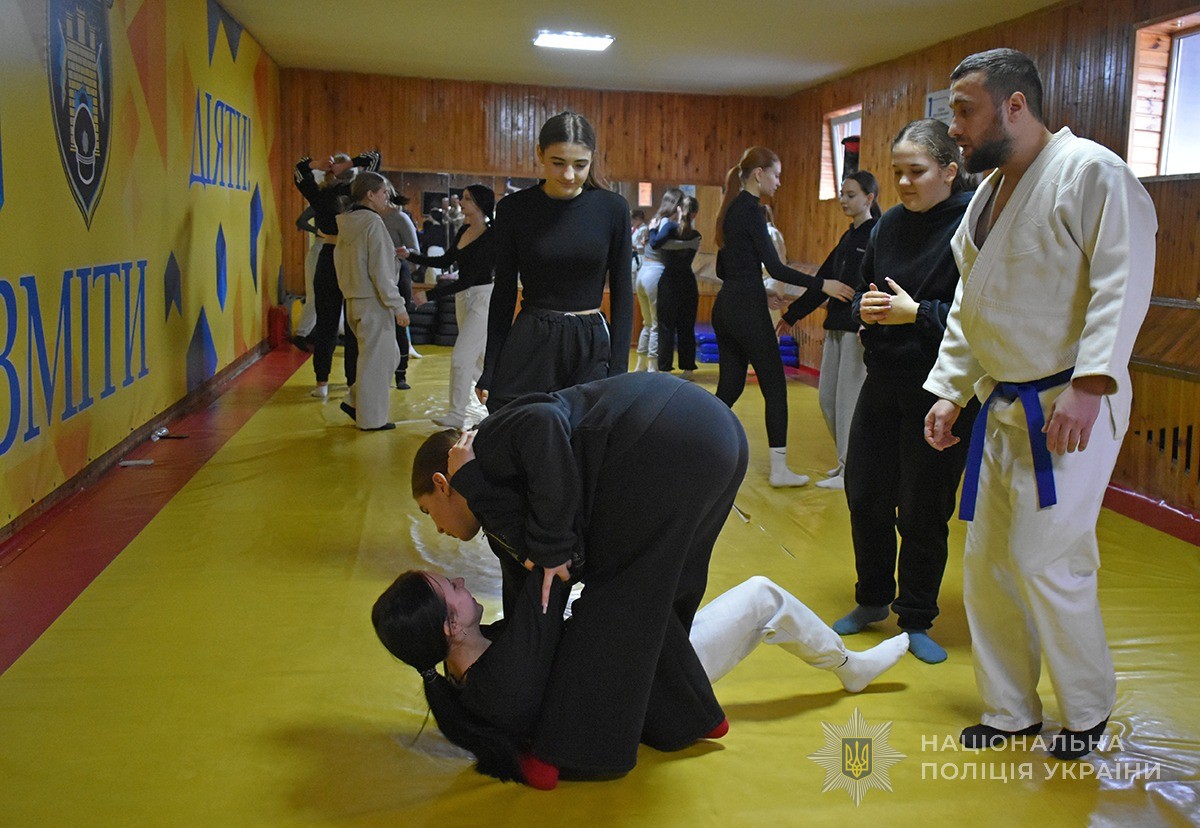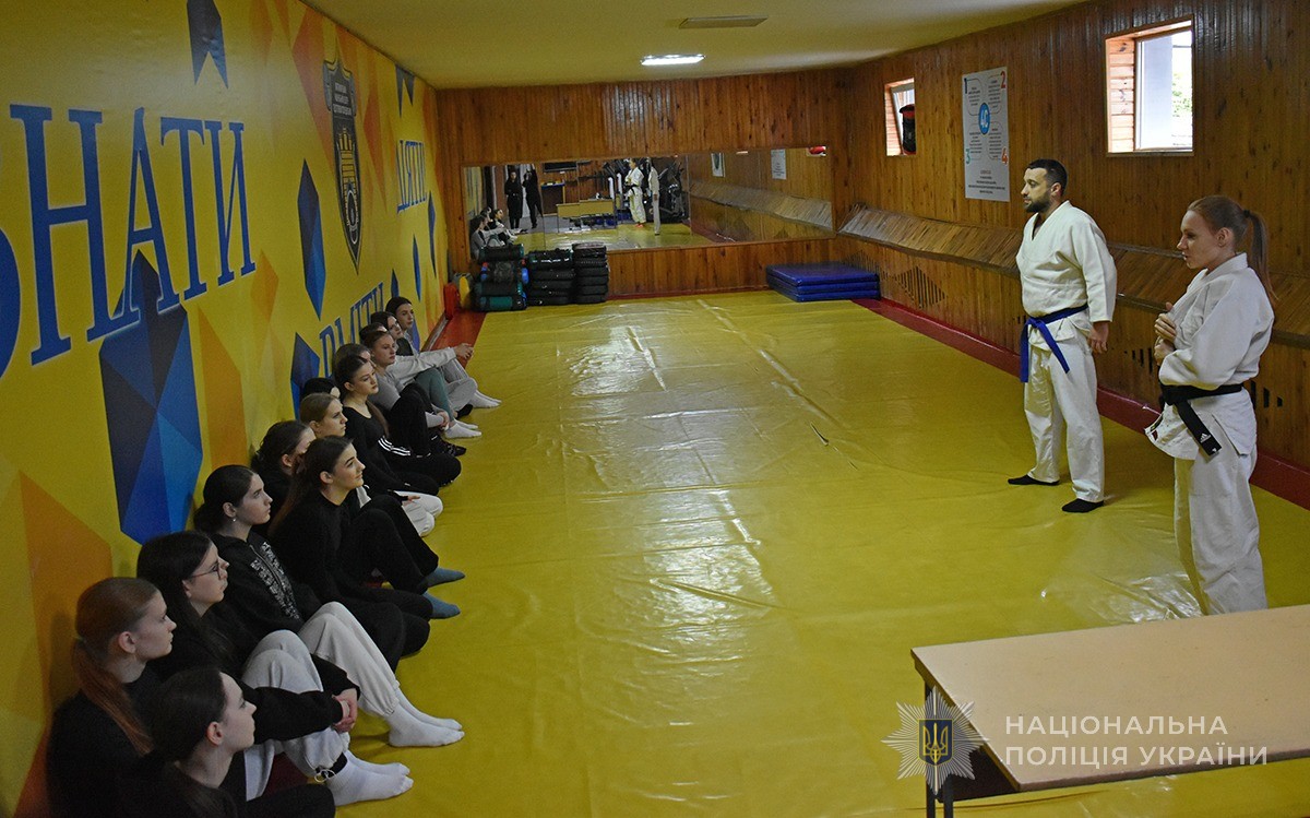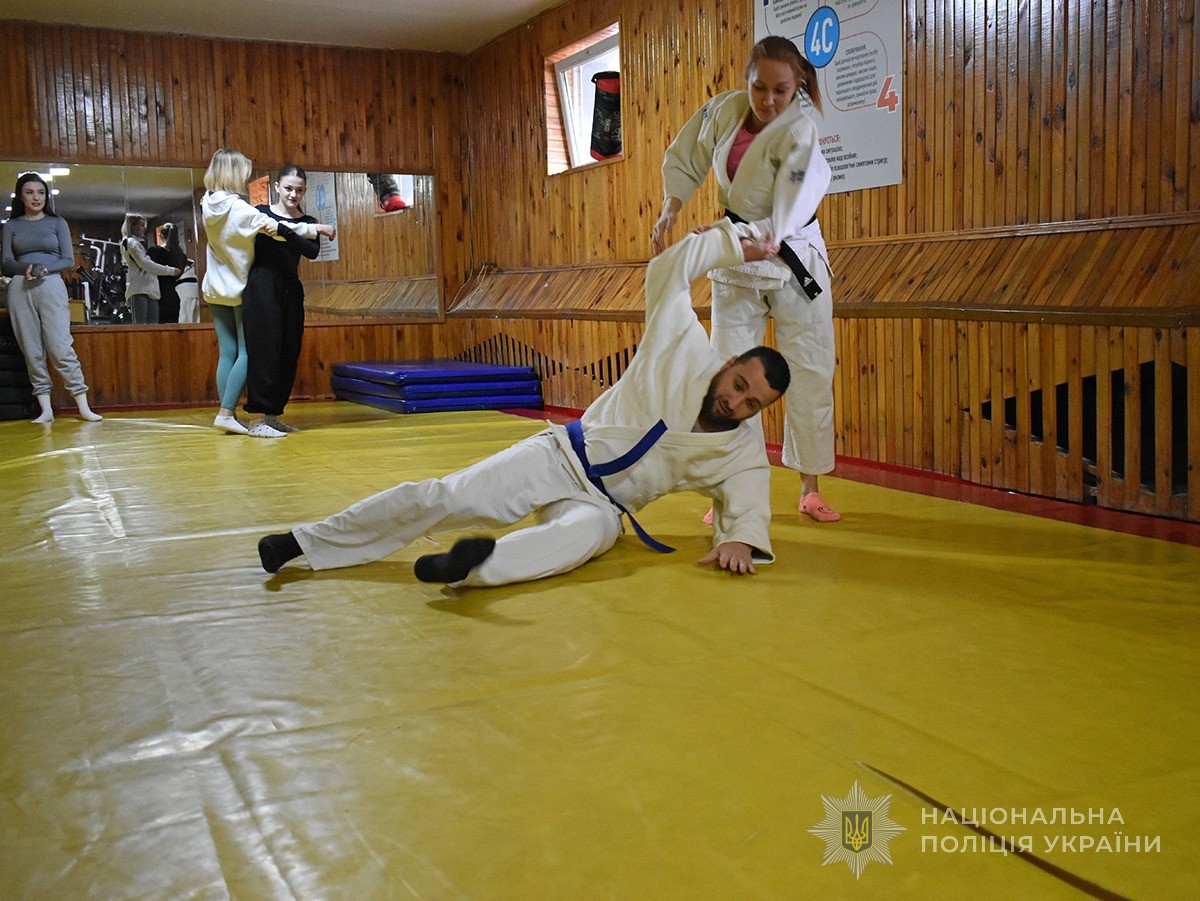 Ще один майстерклас із навичок самозахисту відбувався паралельно у спортивній залі академії. Викладачі-тактики розповіли про те, як правильно оцінити ситуацію і зорієнтуватись у її безпечному розв’язанні. Також дівчата навчились окремим технікам і прийомам самозахисту.