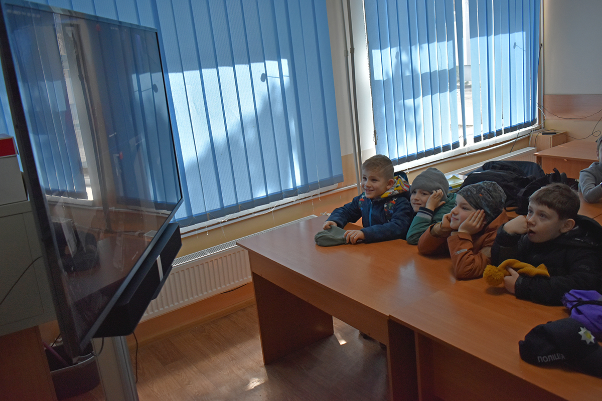 У маленьких відвідувачів була можливість побувати на заняттях з тактики дій поліцейських. Начальник циклу Павло Чос разом зі слухачами продемонстрували навички у затриманні правопорушника. За цим процесом дітлахи спостерігали на великому екрані.