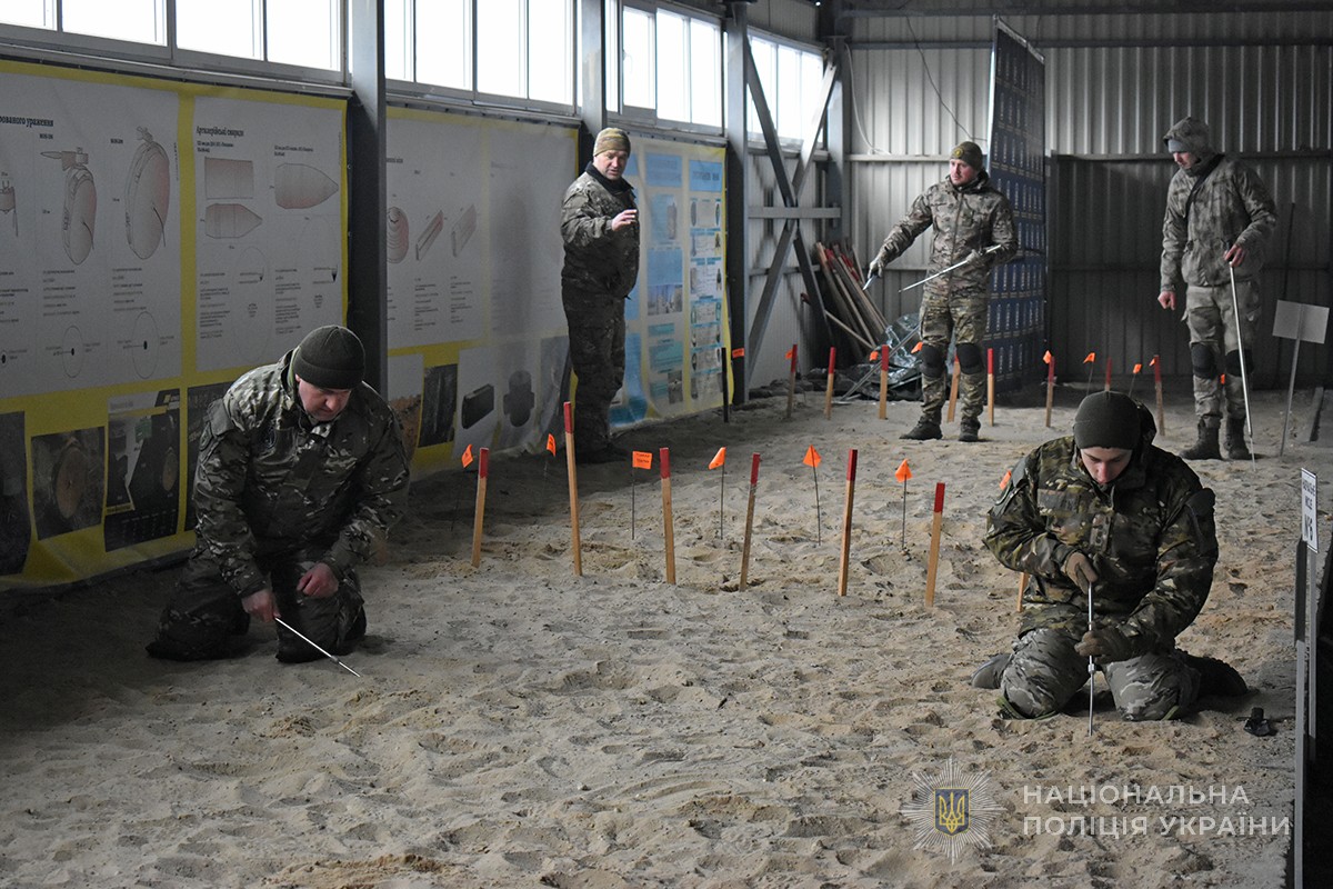 Для поліцейських кінологів Сумщини, які минулого тижня удосконалювали свої знання і навички у поліцейській академії, такі навчання стали новинкою. Теорію закріплювали під час практичних занять, в ході яких застосовували безпечний алгоритм дій для виявлення і знешкодження так званих «розтяжок» боєприпасів.