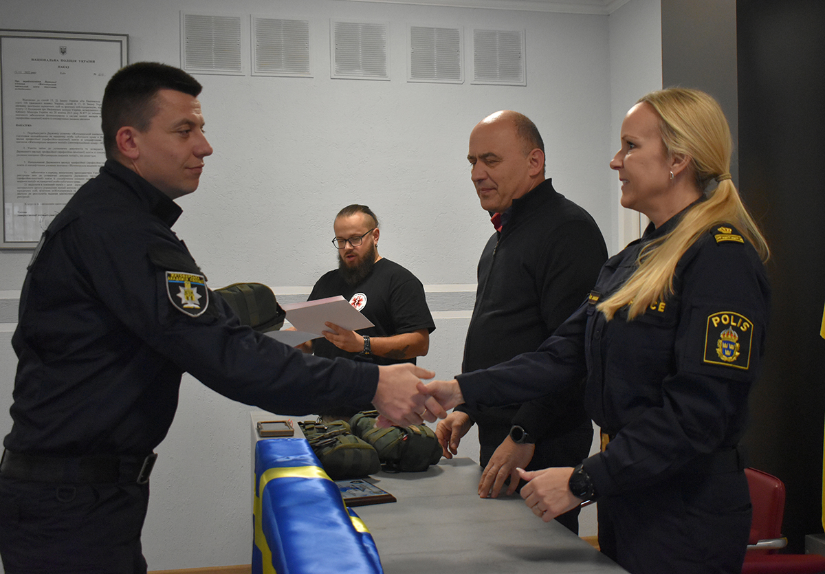 Завершились навчання складанням учасниками іспитів. Вручення сертифікатів відбулось у Житомирській академії поліції у присутності представників поліції Швеції, Консультативної місії ЄС і керівництва навчального закладу.