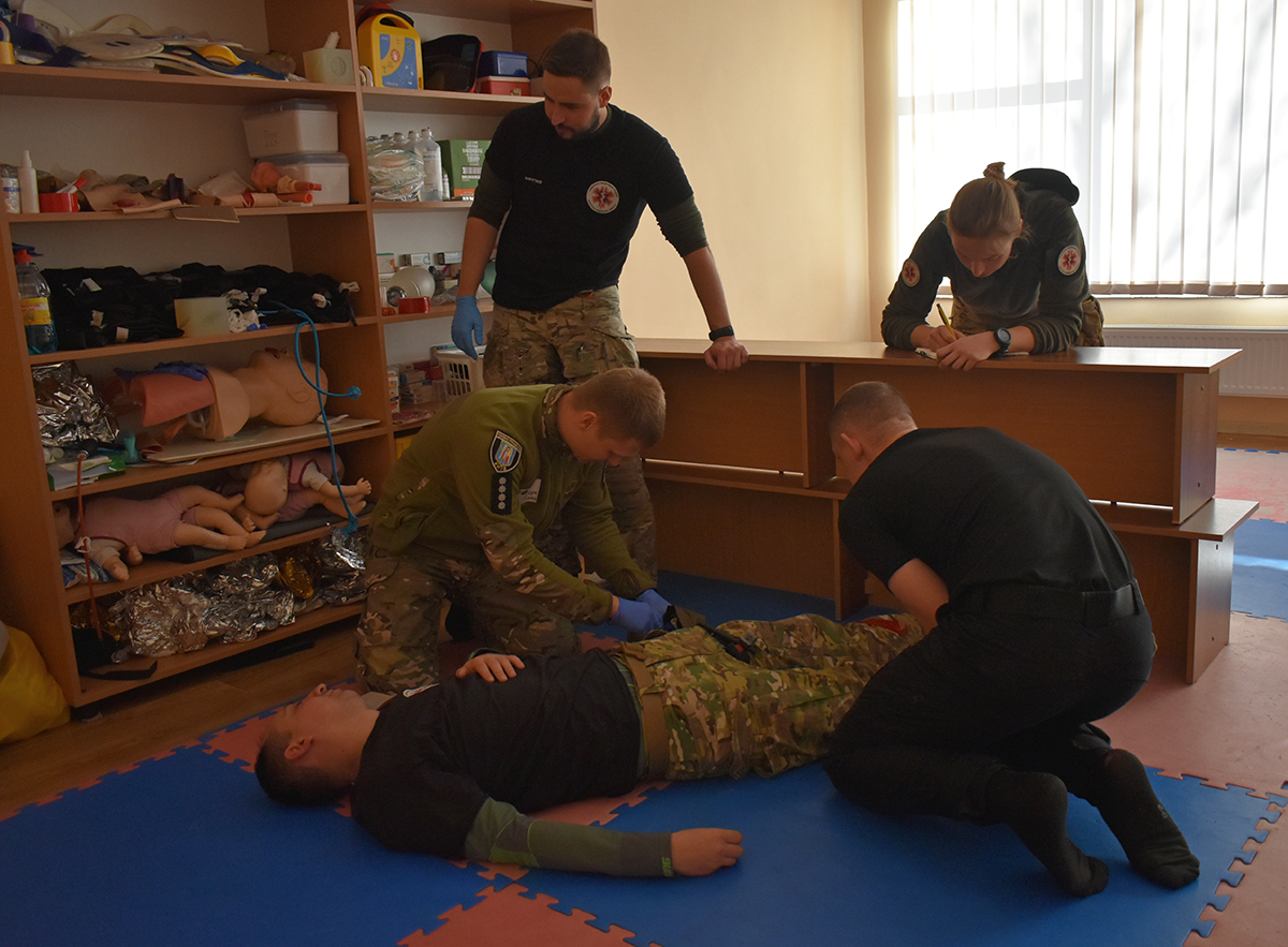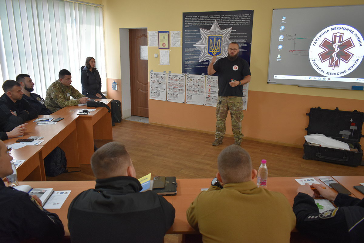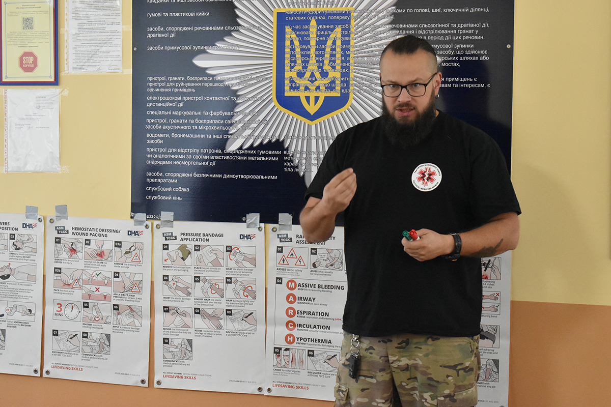 Щодня для поліцейських заняття проводила компетентна команда ГО «Тактична медицина «Північ». За словами інструктора Владислава Чумаченка, курс покликаний «навчити тих, хто навчає інших». Тобто поліцейські-учасники тренінгу зможуть в подальшому й самі бути інструкторами для своїх колег.