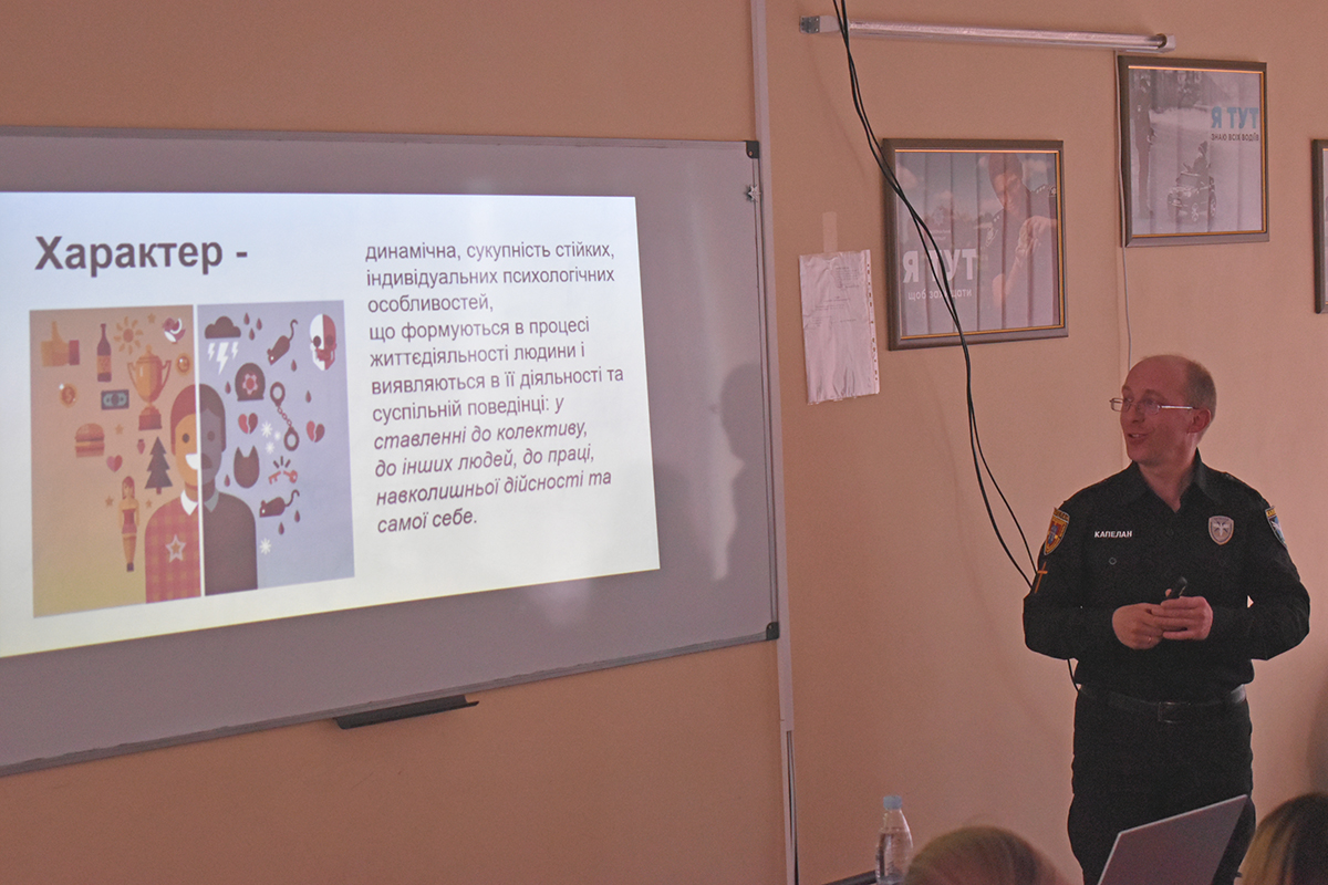 – Формування та розвиток сильного характеру, наявність справжніх цінностей та достойних цілей, - ось, що робить людину переможцем під час криз і випробувань, - зауважив капелан Сергій Козлов на подальшому семінар-занятті для поліцейських академії.