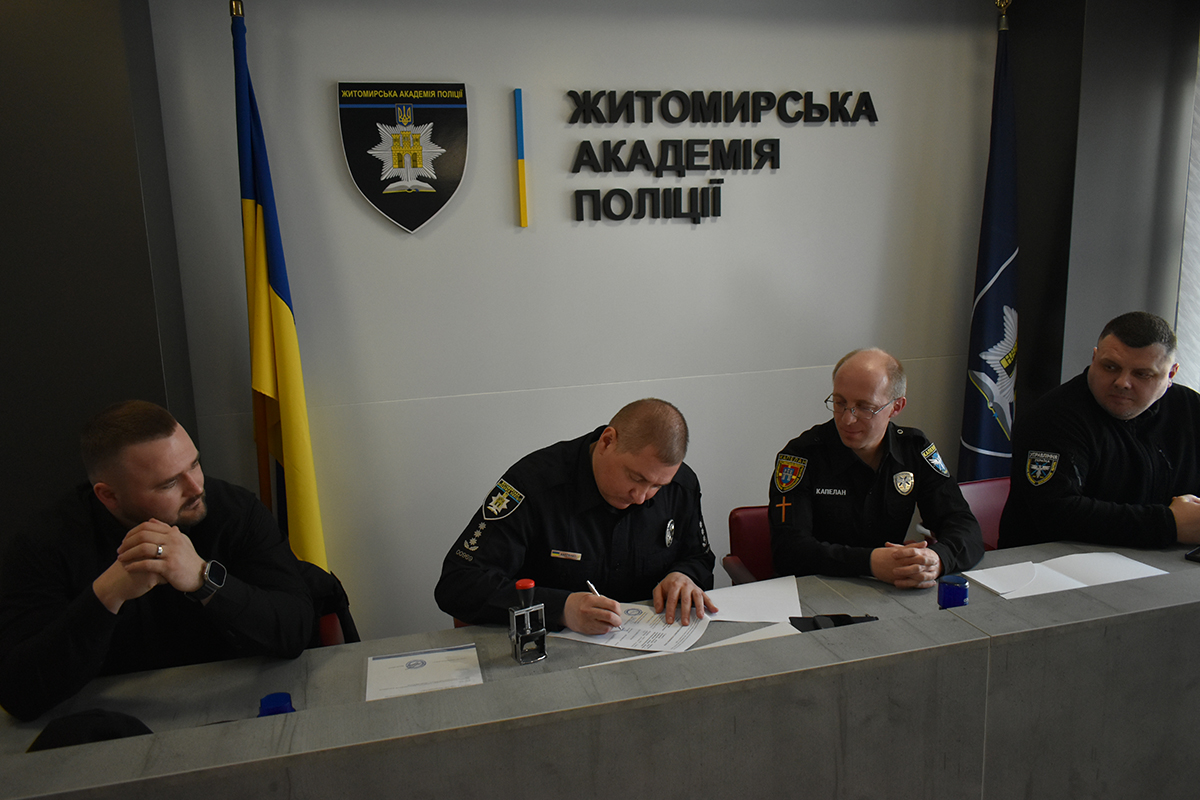 Підписання узгоджених умов взаємодії між Житомирською академією поліції та Громадським формуванням «Капеланський патруль» стало продовженням тривалої співпраці та спільних заходів. Одразу після скріплення документа офіційними печатками капелани провели з працівниками академії мотиваційний семінар.