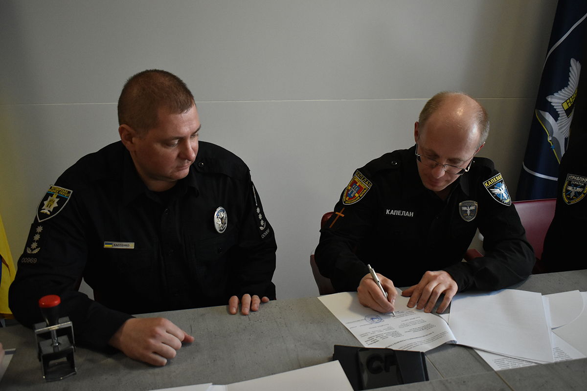 Участь у підписанні меморандуму про співпрацю взяли керівництво поліцейського навчального закладу та представники ГФ «Капеланський патруль».