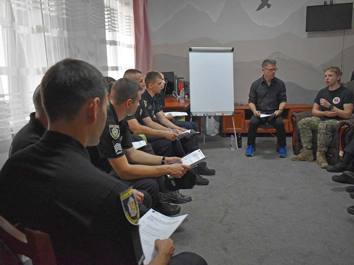 Поліцейські обговорювали з тренером конкретні приклади, відпрацьовували у групах змодельовані ситуації і закріплювали необхідні навички самодопомоги та першої психологічної допомоги іншим.