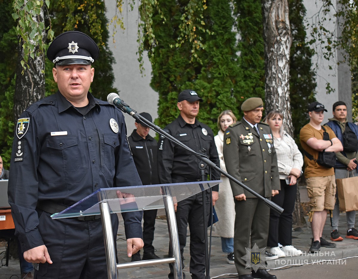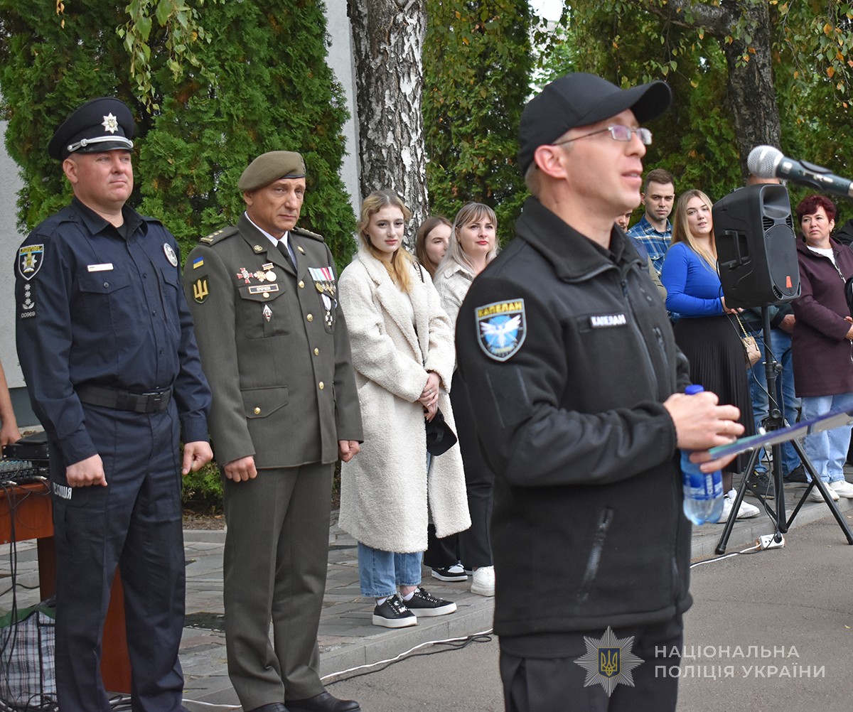 Вітали випускників начальник академії Максим Каптенко, керівник відділу Генерального штабу ЗСУ полковник Олег Крючков, заступник начальника ГУНП Житомирщини Юрій Іванюк та старший капелан ГФ «Капеланський патруль» Серігій Козлов.