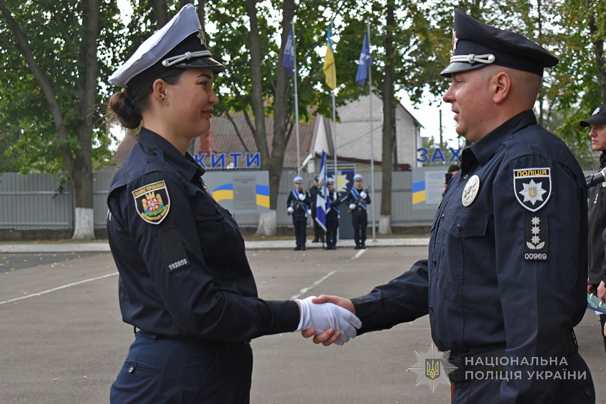 Серед тих, хто буквально відзавтра розпочне виконання службових обов'язків у практичних підрозділах, - представники різних регіонів України, у тому числі прифронтових областей. Це поліцейські підрозділів забезпечення та кінологи.