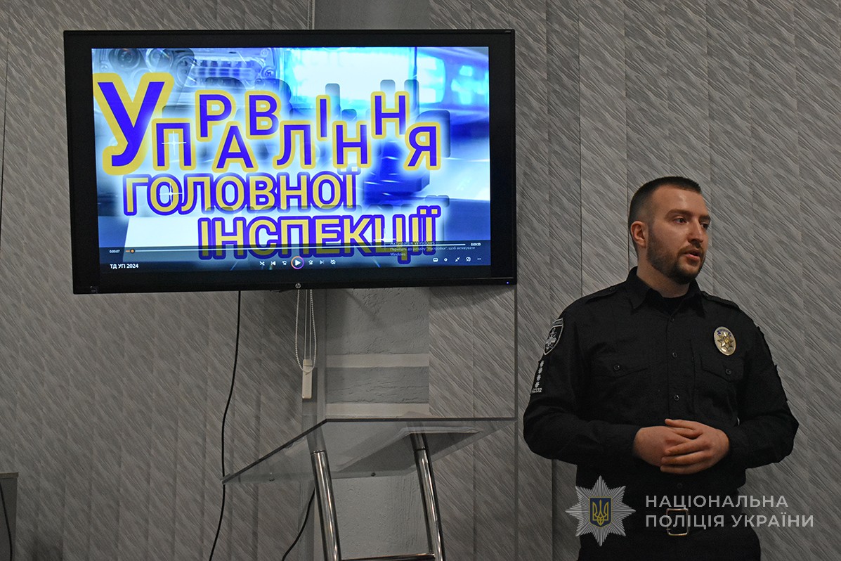 Першою темою до розгляду у рамках професійного навчання став огляд стану дотримання дисципліни та законності поліцейськими за минули рік. Представники Управління головної інспекції ГУНП Житомирщини довели актуальну інформацію, окреслили загальні тенденції та наголосили на принциповій позиції керівництва Національної поліції нетерпимості до порушень серед особового складу і вжитті безальтернативних заходів притягнення порушників до дисциплінарної відповідальності.