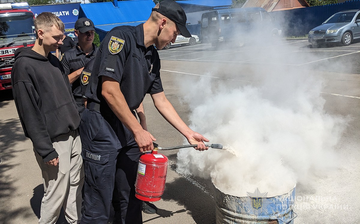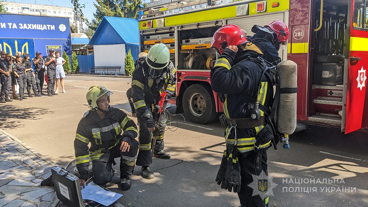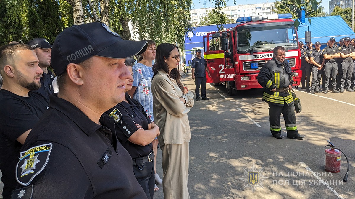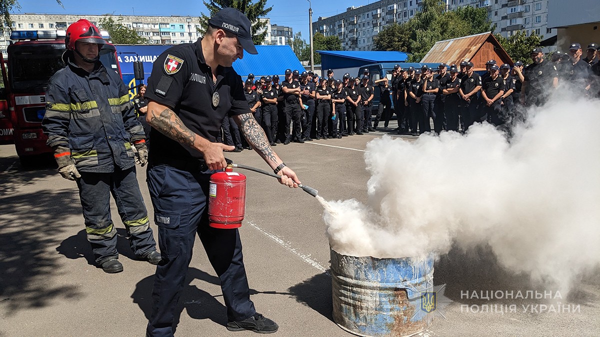 Допомагали поліцейським у проведенні навчань рятувальники однієї з пожежних частин міста. Вони розповіли про алгоритм дій і безпечну поведінку при тих чи інших загрозах, нагадали про використання різних видів вогнегасників та продемонстрували ліквідацію умовного загоряння за допомогою порошкового вогнегасника.