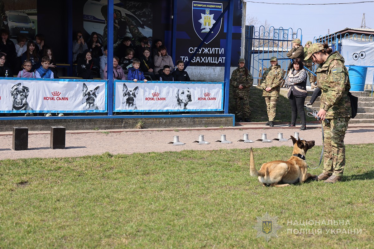 У Житомирській академії поліції відбувся інтерактивний захід для школярів до Дня кінолога. Учні середніх класів і молодші школярики завітали до кінологічного циклу, де познайомилися з особливостями підготовки кінологів і службових собак та випробували власні здібності.