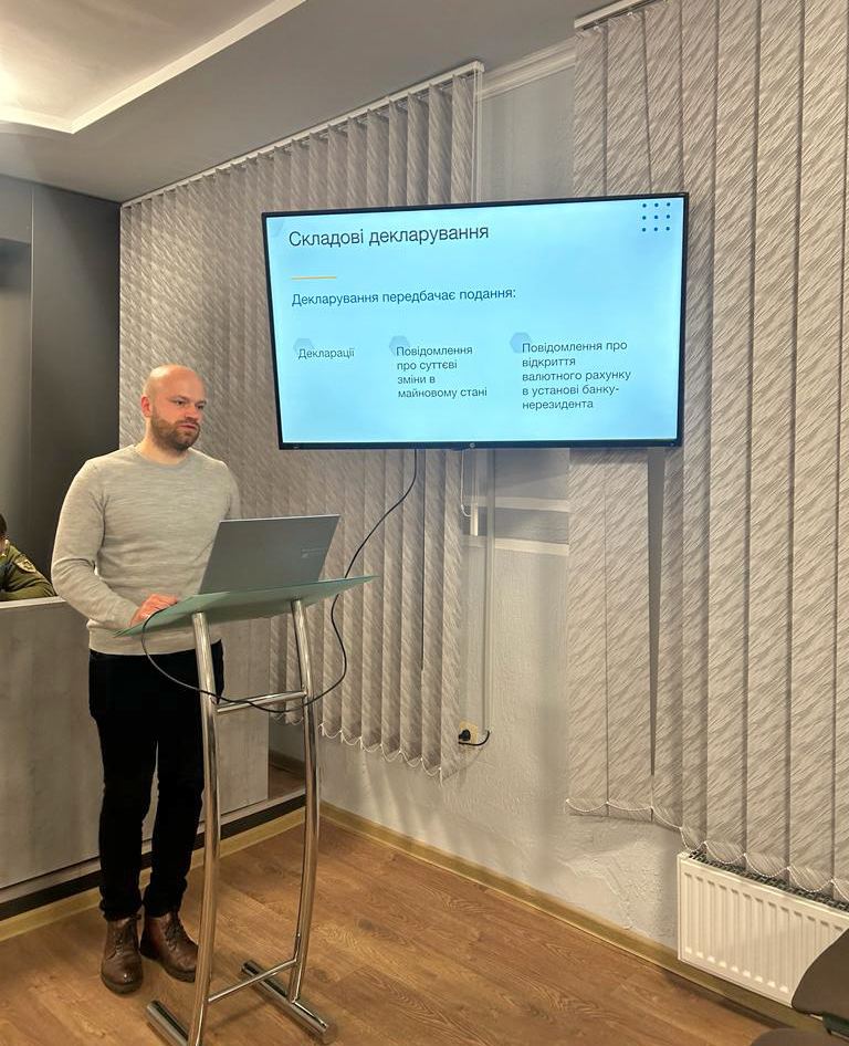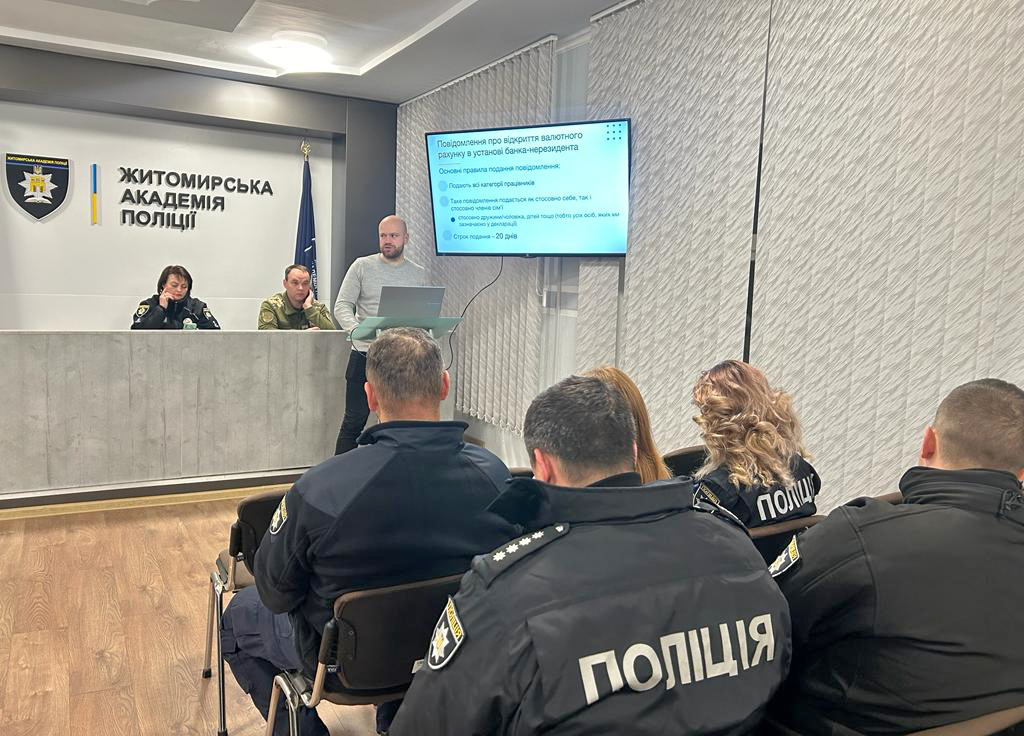 Першою лекційною темою стали вимоги чинного антикорупційного законодавства. Інспектор сектору запобігання корупції ГУНП Житомирщини Ілля Гавриловський проінформував поліцейських академії про особливості процесу подання щорічних декларацій та роз’яснив чинні вимоги і запроваджені новели.