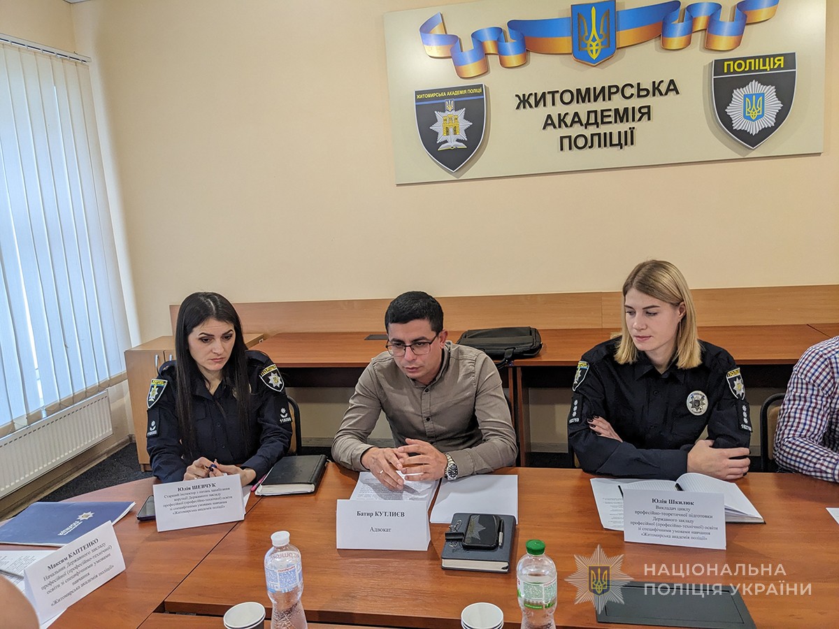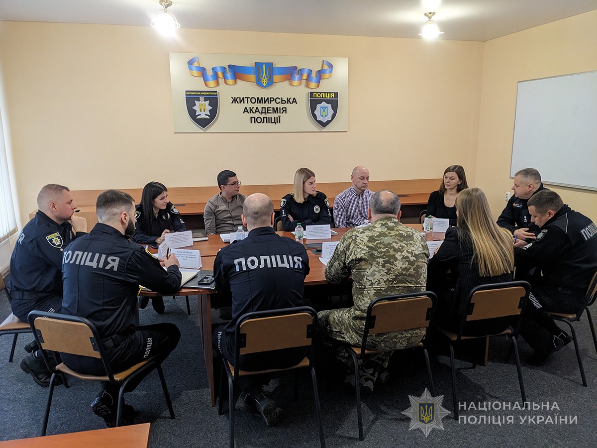 У засіданні круглого столу, що днями був поведений у поліцейській академії, взяли участь керівник навчального закладу Максим Каптенко, уповноважена з питань запобігання та виявлення корупції академії Юлія Шевчук, представники відповідних підрозділів Житомирської обласної військової адміністрації, міської ради, Департаменту внутрішньої безпеки НПУ, регіональних Управління поліції охорони, ГУНП, ГУ ДСНС, 9 прикордонного загону імені Січових стрільців та правозахисники.
