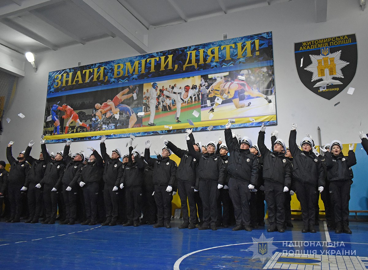 Понад 80 поліцейських після успішного закінчення первинної професійної підготовки поповнили лави працівників територіальних підрозділів поліції у різних регіонах країни. Загалом упродовж року дипломи Житомирської академії поліції отримали близько 400 правоохоронців.