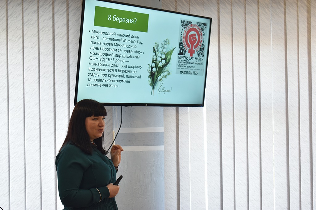 Відтак найперше координаторка зустрічі роз’яснила учасницям заходу справжнє значення та історичне підґрунтя відзначення дня 8-го березня в Україні.