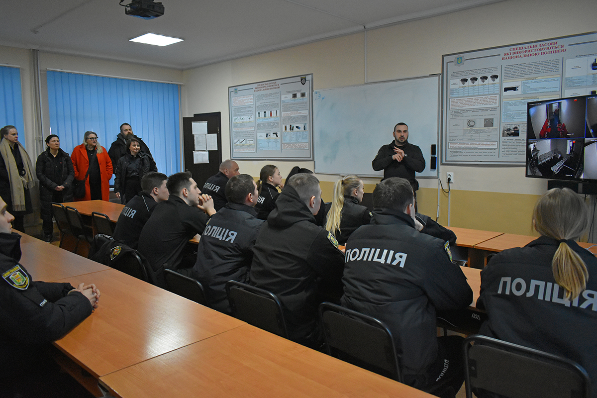 Міжнародні партнери дізнались про загальні тенденції в організації підготовки поліцейських в академії за напрямками та оглянули приміщення та навчальну базу.